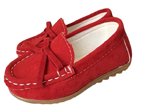 キッズ シューズ 子供 くつ スエード ローファー 靴底 滑り止め 仕様 (赤色, 14.5cm)