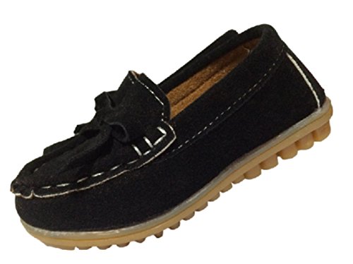 キッズ シューズ 子供 くつ スエード ローファー 靴底 滑り止め 仕様 (黒色, 13.5cm)