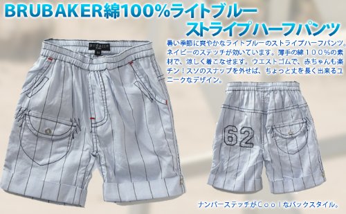 北欧デンマークの子供服ブランド BRUBAKER 綿100%ライトブルーストライプハーフパンツ 56cm