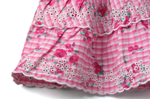 デンマークの高級子供服ブランドClaireのスカートです。ピンクチェックにローズプリントが女の子テイスト満載です。こだわりもいっぱいのスカート。Claireのロゴプリントで、しっかりアピール。小花とフリルのカッティングが、さらにキュート 「インポートベビー服」