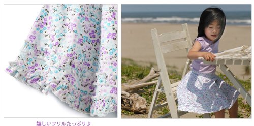 Flower printどこか懐かしい小花が優しい雰囲気のフレアスカート。切り替えやフリルたっぷりでお姫様気分♪ウエストセンター部分はV字のラインなので、スッキリとした感じ。綿100%で素材も優しい!ウエストゴムなので、楽に着られます インポートベビー服