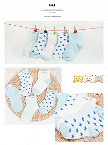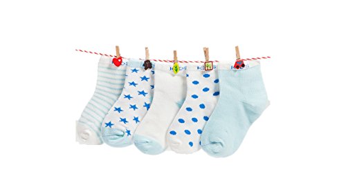 clearly ベビー・キッズ用靴下 シンプル薄手 5足セット 1~10歳くらいまで (4~6歳(約12~15cm), ブルー)