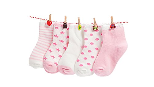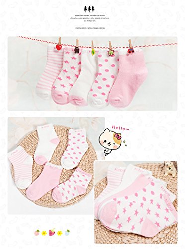 clearly ベビー・キッズ用靴下 シンプル薄手 5足セット 1~10歳くらいまで (7~10歳(約16~19cm), ピンク)