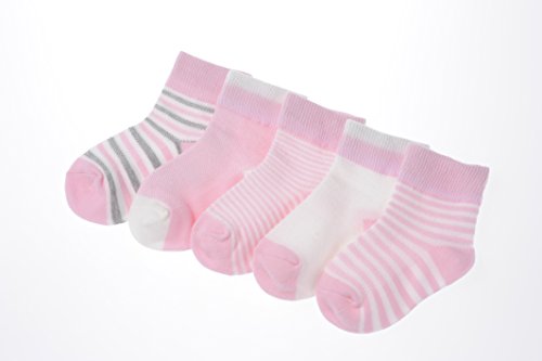 clearly ベビ- キッズ 靴下 シンプル メッシュ ボ-ダ- 5足 セット 6ケ月~3歳くらい (0-1, ピンク)