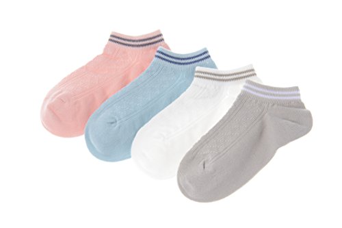 clearly ベビー キッズ スニーカー ソックス 薄手 靴下 シンプル 単色 4足 セット 3歳~8歳くらいまで (3-5, 2ライン)