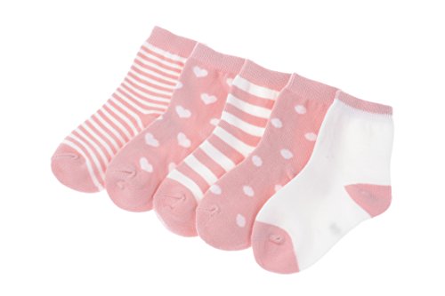 clearly ベビ- キッズ 靴下 かわいい シンプル 星 ハ-ト ボ-ダ- 5足セット 6ケ月~6歳くらい (1-3, ピンク)