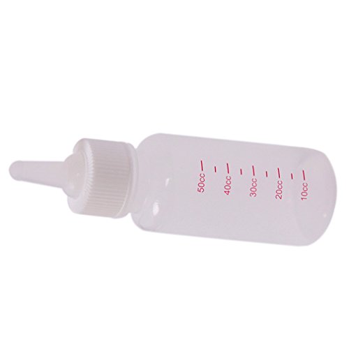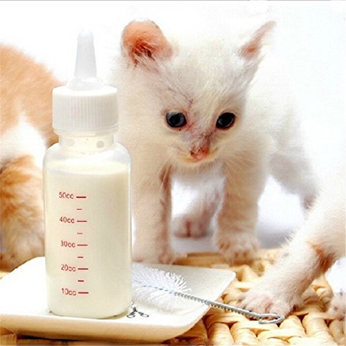 Material: PP; Size Approx: 12cm/4.72inch(Height), 3.5cm/1.38inch(Dia.);Package included: 1set(3pcs);Especially designed for small puppies, kittens, small rabbits of newborn and about 1 month old.;With scale on the surface of the bottle to control daily feeding volume.;With a special brush to easily clear the inside of the bottle. Soft, environmental-friendly, non-toxic nipple, safe for your pet!
