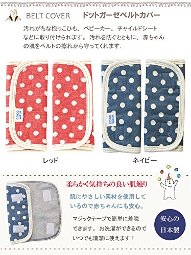 - 爽やかなデザインが人気のCOCOWALKからとっても便利なベルトカバーが登場です。 抱っこひも、おんぶひも、ベビーカーやチャイルドシートなど、汚れやすいのになかなか洗えないベルト部分をカバーしてくれます。 また、さらっと肌触りの良い生地で赤ちゃんのお肌がベルトと擦れるのも防いでくれる優れもの。 マジックテープで着脱簡単なので、赤ちゃんがなめたり、よだれでべとべとになったらすぐに取り換えられます。 洗濯ができるのでいつも清潔に使えるのも嬉しいポイント♪ 安心の日本製で、使いやすいドット柄はギフトにも喜ばれるアイテムです。