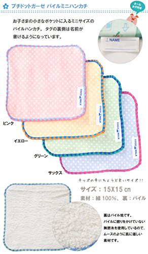 - 【一押しポイントその1】 お子様の小さな手に丁度良い15cm×15cmのミニサイズ。 子供服の小さなポケットに入るサイズで、タグの裏には名前が書けるので通園通学にもピッタリ。