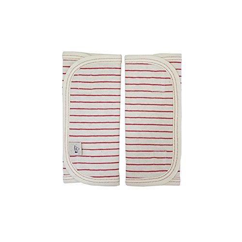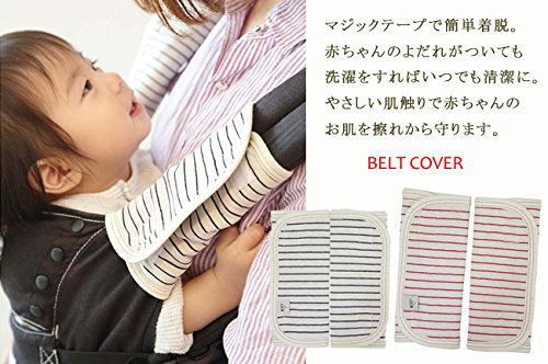 抱っこひもやおんぶひも、ベビーカー、チャイルドシートなどの肩ベルトに取り付けて、お子様の首回り、ほっぺが肩ベルトと擦れるのを防いでくれます。