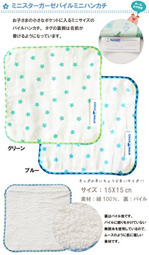 品質も良いCOCOWALKのミニハンカチ、やわらか手触りで嬉しいプチプラ♪ ◎ 一押しポイントその1 ◎ お子様の小さな手に丁度良い15cm×15cmのミニサイズ。子供服の小さなポケットに入るサイズで、タグの裏には名前が書けるので通園通学にもピッタリです! ◎ 一押しポイントその2 ◎ 表は通気性の良いガーゼ、裏のパイル地に、人気の「無撚糸」を使用しています。 無撚糸はパイル糸に撚り(より)をかけていないので、糸がねじられていないため、 吸水力が高く、ふんわり柔らかくとっても優しい手触りです♪ ◎ 一押しポイントその3 ◎ 手触りも品質も良くて、プチプラです! 毎日使うハンカチは何枚か揃えておきたいので、このお値段は嬉しいですね! 安心の日本製で、カラフルデザイン!ちょっとしたギフトにもオススメです♪ ■サイズ:たて 15cm よこ 15cm ■素材:綿100% ■生産国:日本 ■メール便:OK!