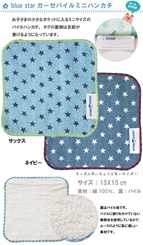 ブルースターがおしゃれでカッコいい! こちらは、洗い替え用に何枚かあると便利な、お手頃価格のミニハンカチ♪ お子さまのかわいらしい小さな手にフィットするサイズ、15X15cmです。 子供服の小さなポケットに入れることもできますよ! 表面は通気性の良いガーゼ、裏面は柔らかな手触りの無撚糸を使用しています。 お名前の書けるネームタグ付きで、通園通学にも☆ 毎日、お気に入りの1枚をもっていけますね♪ ■素材:綿100% ■サイズ:たて 15cm よこ 15cm ■生産国:日本