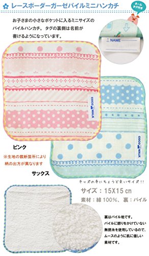ネームタグ付き☆ レースボーダーのミニハンカチです。 15cm×15cmのミニサイズなので、子供服の小さなポケットに入れることができ、 お子さまの小さなかわいらしい手に、ジャストフィットしてくれそうですね。 毎日使うハンカチは、洗い替え用に何枚かあると便利♪ 通気性もよく柔らかな手触りで、お子さまの通園通学にもオススメです。 ■素材:綿100% ■サイズ:たて 15cm よこ 15cm ■生産国:日本