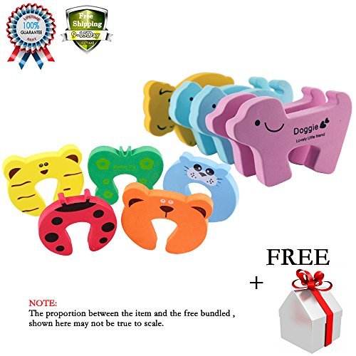Flexible lightweight non-toxic material, durable and soft to touch,Dimensions: 10cm x 10cm x 1.3cm;Cute colorful cartoon designs that every kids will love,Curve shaped to easily attach or remove from doors;Avoid sudden closed doors that will hurt babies' fingers.;Keep doors ajar so parents can monitor kids activities from another room;Package included:10 pcs Door Stopper with 4 pcs Table Desk Corner Edge Guard Cushion Free Gift .note:(EUB,USPS with tracking No., 8-15 Business days for delivery if the price more than $6.99,3 months guarantee resend or refund if the item has any problem.pls kindly add the item in wish list if you like, we will irregular Promotions.)