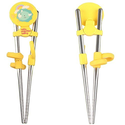 - Baby Children Beginner Learning Stainless Flatware Anti-slip Right Handed Traning Helper Chopsticks (yellow)
