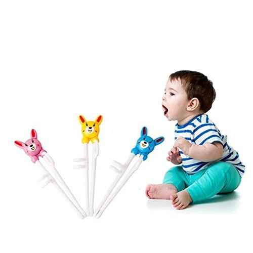 - Baby Children Beginner Learning Stainless Flatware Anti-slip Right Handed Traning Helper Chopsticks (3 pcs multi color)