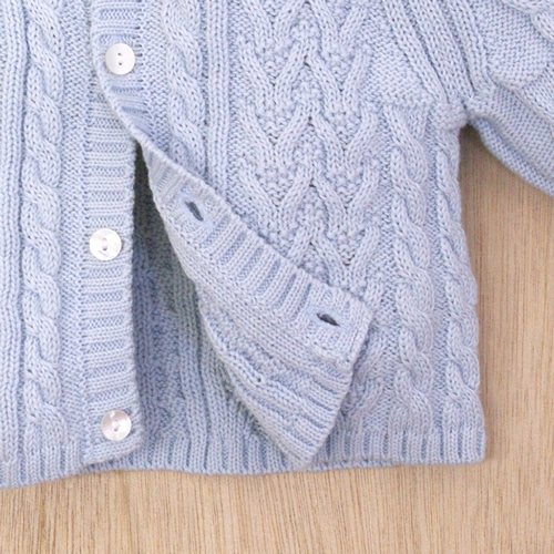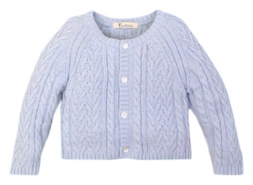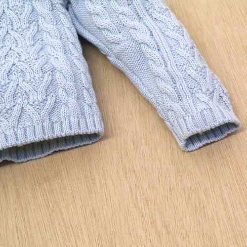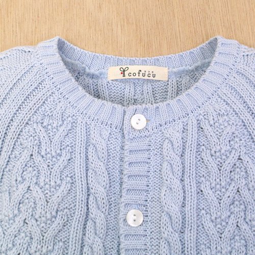 cofucu(コフク) ケーブル編みニットカーディガン 80cm ブルー オーガニック綿100%