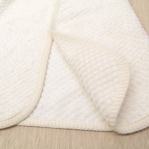 ふかふかの肌触りが気持ちいい袖なしのベストは、前がグリッパーで全開するので着脱が簡単。 お風呂上りに直接着ても、パジャマの上に着てそのまま眠ってしまっても・・裾広がりの形は、動きやすいうえにとてもかわいらしいです。 ポコポコしたふわふわの凹凸柄がお洒落なローブです。