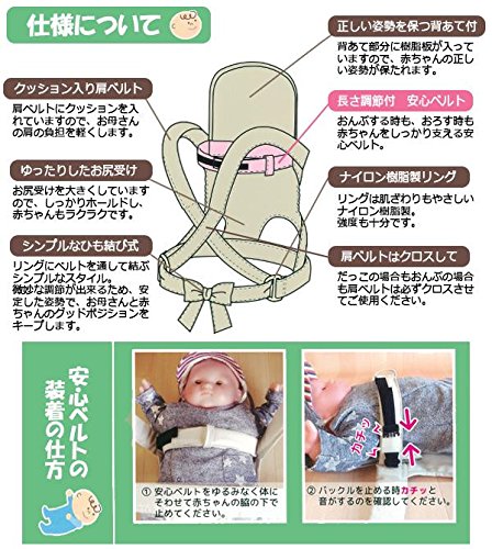 - 仕様 サイズ:フリー 【お手入れ方法】 洗濯方法:手洗い、陰干し 乾燥機使用不可 【使用期間】 だっこ:首がすわって(生後4ヶ月)から12ヶ月(体重約10.2kg)まで おんぶ:首がすわって(生後4ヶ月)から30ヶ月(体重約14.9kg)まで