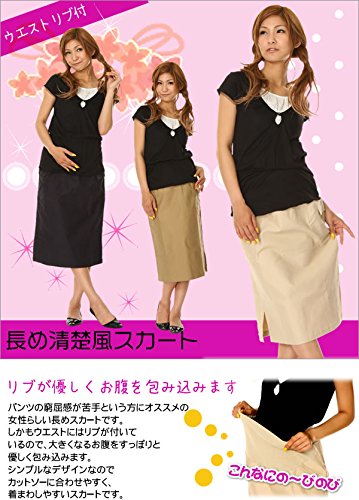 パンツの窮屈感が苦手という方にオススメの女性らしい長めスカート。お腹をすっぽりと優しく包み込むリブ付き、シンプルなデザインなので着まわしやすいスカートです。