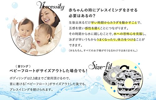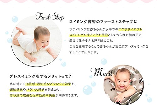 - スイミングのファーストステップに ➡ ボディリングは赤ちゃんが水中でのエクササイズ「プレスイミング」をすることを目的として作られた浮き輪です。プレスイミングをすることで水に対する抵抗感や恐怖心をなくし、運動感覚や心身の成長を促す効果や快眠が期待できます。※個人差がございます。