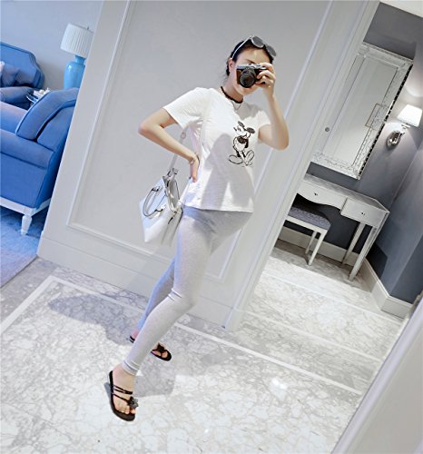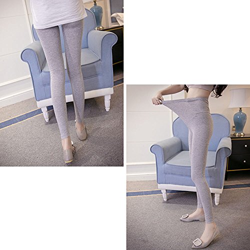 9分丈 マタニティ お腹 楽ちん レギンス ウエスト ゴム調節可能 薄手 産前 産後 対応 スパッツ パンツ 締め付けない さらさら しっとり 快適な 肌触り (M, ライトグレー)