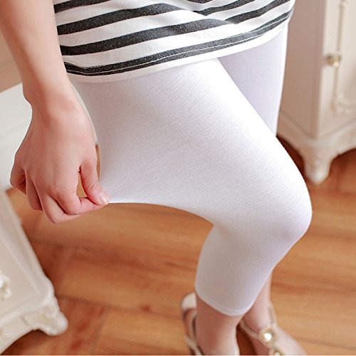 7分丈 マタニティ お腹 楽ちん レギンス ゴム調節可能 産前 産後 対応 スパッツ パンツ 締め付けない (M, ホワイト)
