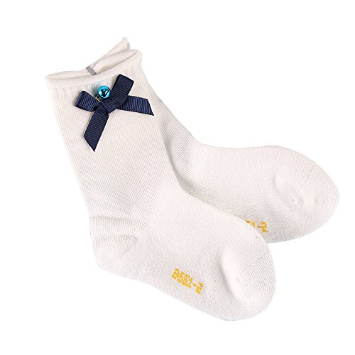 【 全11色 ベビー リボン 鈴 付き 靴下 】 赤ちゃん 用 BABY ソックス かわいい ハイソックス ひざ下 お出かけ パーティー 七五三 入園 卒園式 カラフル 選べる カラー 春秋冬 (M, ホワイト)