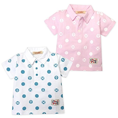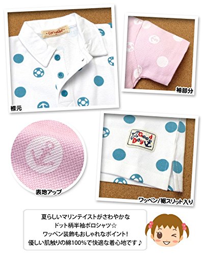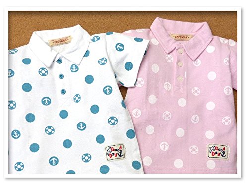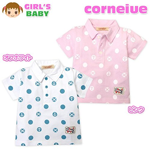 (ピンク/95cm) ベビー服 女の子 ポロシャツ 半袖 綿100% ドット柄 ワッペン装飾 女児 ベビー