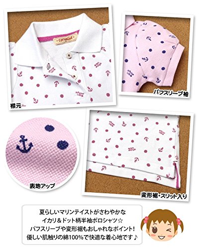 (ピンク/95cm) ベビー服 女の子 ポロシャツ 半袖 綿100% イカリ&ドット柄 変形裾 パフスリーブ 女児 ベビー
