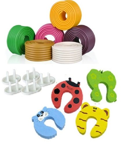 絶対ケガさせない! ★ 新型!ケガ 防止 2M コーナーガード クッション & コンセントガード & ドアストッパー セット ★自由自在 角要らず! 自由に作れます 両面テープ付き! cos baby-3 (2m, グリーン)