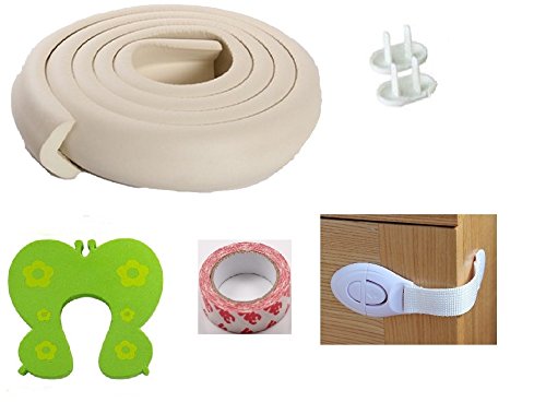 まとめて 安心 ケガ 防止 セット お家の危険をシャットアウト ! 2M 12mm 厚 L型 コーナーガード クッション 【コンセントカバー & 引き出し ロック & 3M 両面テープ & ドアストッパー 】 (ホワイト)