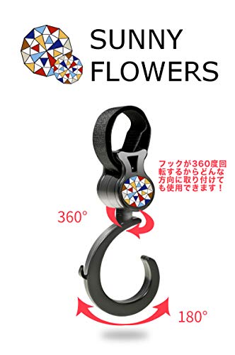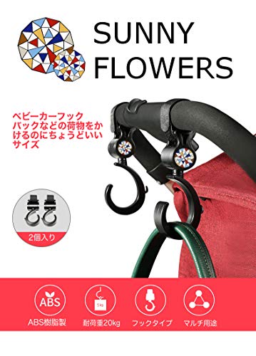 SUNNY FLOWERS ベビーカー フック マルチフック 360度回転 耐荷重20kg ベビーカーの荷物フックにも、自転車や自動車のフックとしても使える
