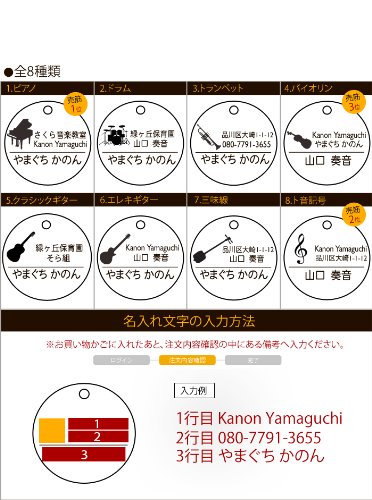 名札 入園祝い 幼稚園バッグ用 名前キーホルダー(音楽・楽器シリーズ)