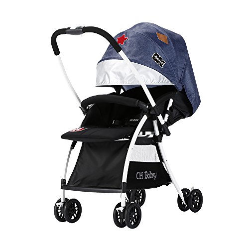 [crosmall]軽量A型両対面ベビーカー 折畳がラクラク フルフラット 大容量モノ置きカゴ 1ヶ月~36ヶ月頃対象 4.7kg (ファションブルー)
