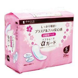 しっかり吸収でプラスアルファの安心感! お産用パッド ソフトレーヌαガード(S)20個入 約11cm×29cm 産後3、4日目から