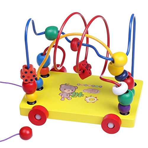 木のおもちゃ ローラーコースター シンプルファンの素晴らしいギフト木のつみきカラフルフルーツ型ビーズコースタービーズメイズルーピング幼児知育玩具 男女兼用