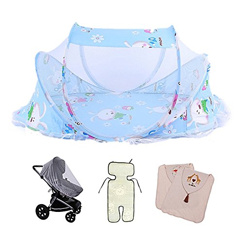 deerzon べビー蚊帳 ワンタッチ底付 (ベビーカー用虫よけネット/涼感ござシート/汗とりパッド2枚付) (ブルー)