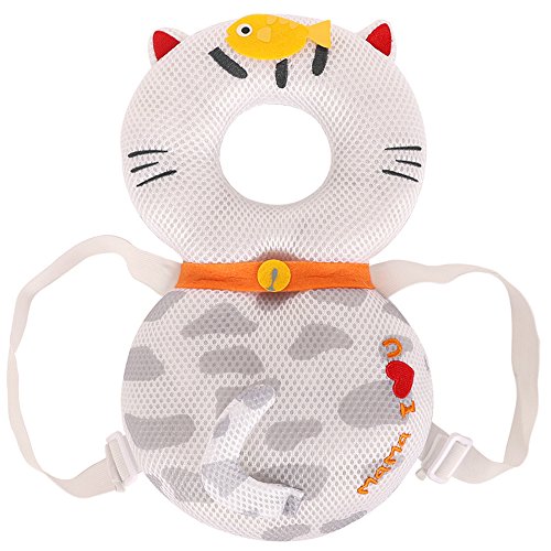 dizoon ベビー ヘッドガードリュック メッシュ 赤ちゃん 転倒 防止 頭 保護 誕生日 0歳 1歳 出産祝い 女の子 男の子 子供 ベビー用品 安全 かわいい クッション ベビーヘルメット 枕 (メッシュ猫(ホワイト), 35 * 20)