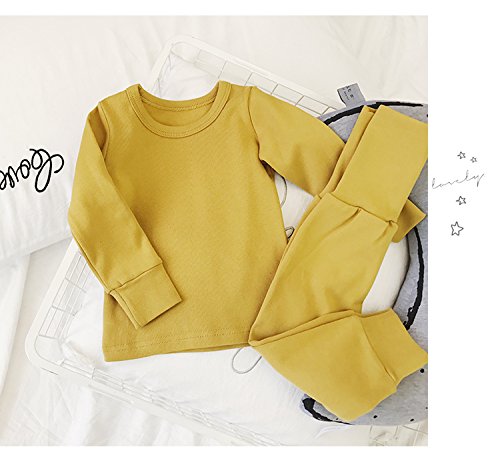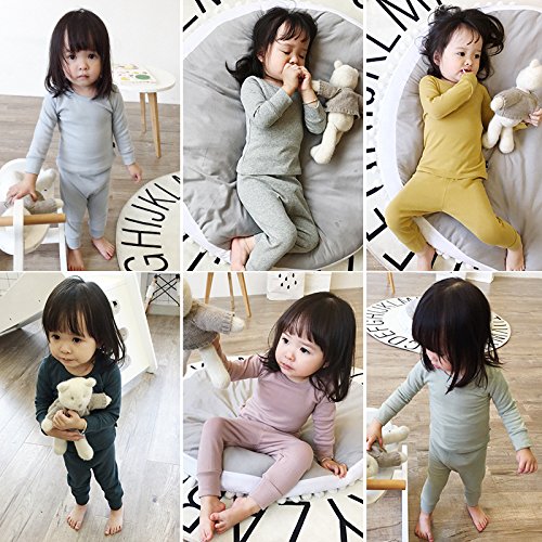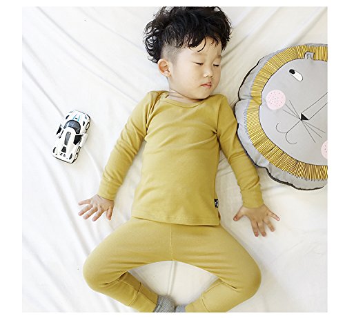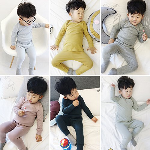 ディゾン(dizoon)無地 秋服 パジャマ キッズ 綿100% 長袖 上下 男女兼用 男の人 女の人 子供ベビー服 総柄腹巻付き 6色 紺 青 灰 緑 ピンク イエロー 0-8歳