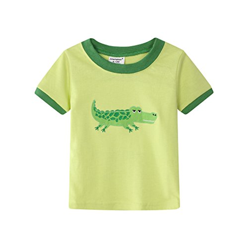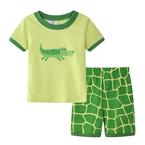 dizoon(ディゾン)パジャマ キッズ 服 tシャツ 子供 ベビー服 赤ちゃん 男の子 女の子 寝間着 服 綿100 春夏 半袖tシャツ 半ズボン 2着セット 緑 グリーン ワニ 車 80 90 100 110 120 130 140 (ワニ, 7歳(120-125cm))