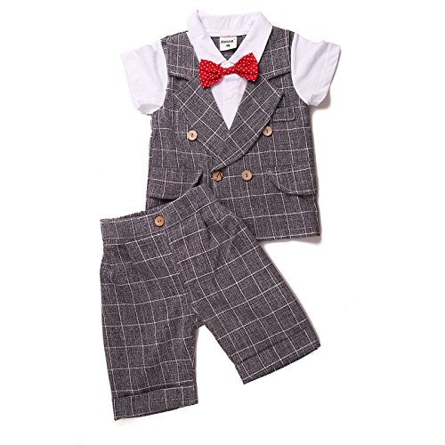 dizoon(ディゾン)ベビー キッズ 子供服 フォーマル 男の子 カバーオール ロンパース セレモニー 結婚式 誕生日 80 90 100 110cm (90cm, グレイギンガム)