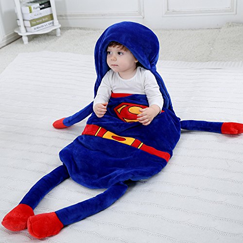 (ディゾン)dizoon ベビー スリーパー 寝袋 おくるみ 暖かい 柔らかい 子供用 赤ちゃん フランネル 春秋冬用 新生児 0-2歳 7デザイン かわいい カートゥーン (スーパーマン, 0-1歳)