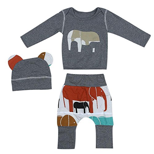 domybest ベビー服 長袖シャツ+ロングパンツ+帽子 肌着 三点セッド 0-2歳 男女兼用 赤ちゃん コットン パジャマ ルームウェア 普段着 春夏秋 可愛い (90)