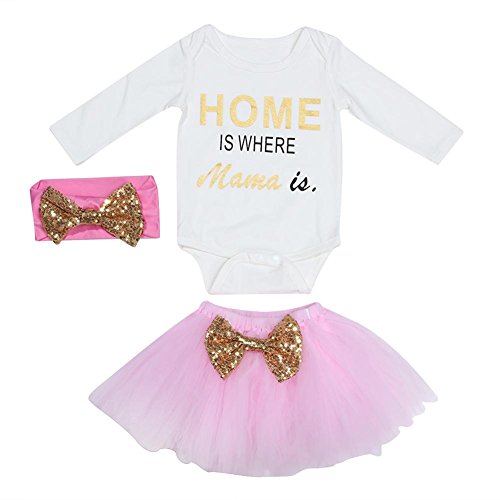 domybest ベビー服 長袖ロンパース+スカート+ヘアバンド 三点セッド 0-2歳 秋 女の子赤ちゃん コットン ルームウェア 普段着 春夏秋 可愛い (80)