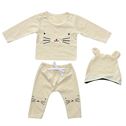 domybest ベビー服 肌着 長袖シャツ+ロングパンツ+耳付き帽子 三点セッド 0-2歳 男女兼用 赤ちゃん コットン パジャマ ルームウェア 普段着 春夏秋 可愛い (90)