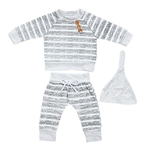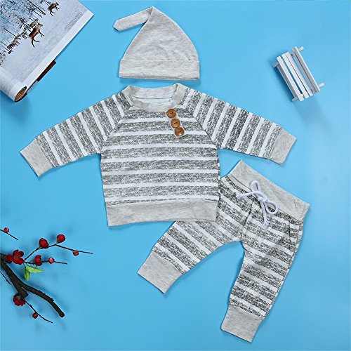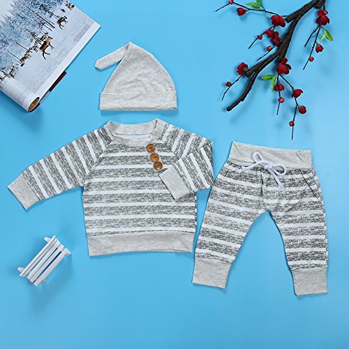 domybest ベビー服 肌着 長袖シャツ+ロングパンツ+帽子 三点セッド ボーダー柄 0-2歳 男女兼用 赤ちゃん コットン パジャマ ルームウェア 普段着 春夏秋 可愛い (70)