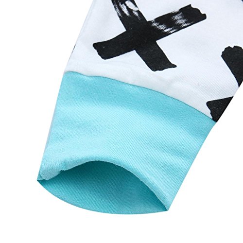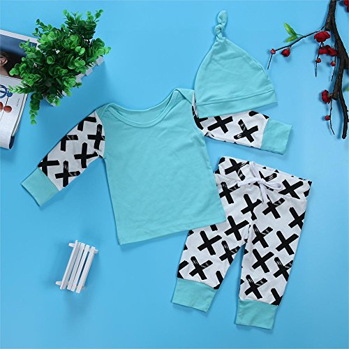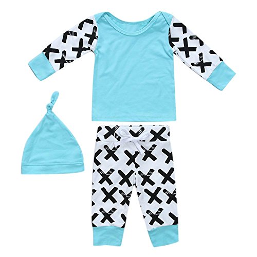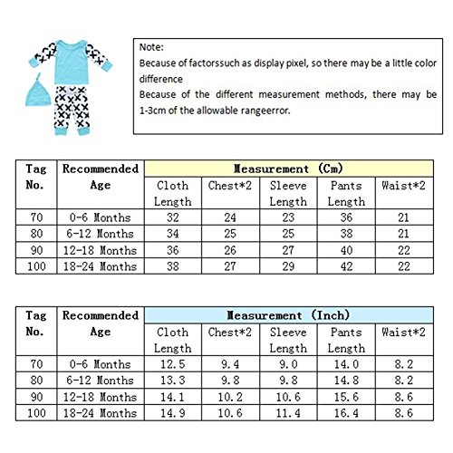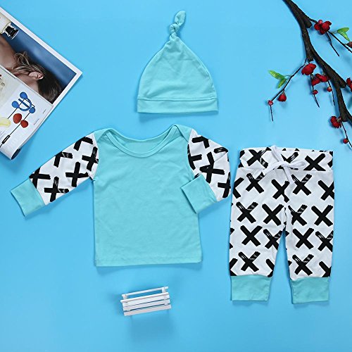 domybest ベビー服 肌着 長袖シャツ+ロングパンツ+帽子 三点セッド ボーダー柄 0-2歳 男女兼用 赤ちゃん コットン パジャマ ルームウェア 普段着 春夏秋 可愛い 2色 (80, ブルー)
