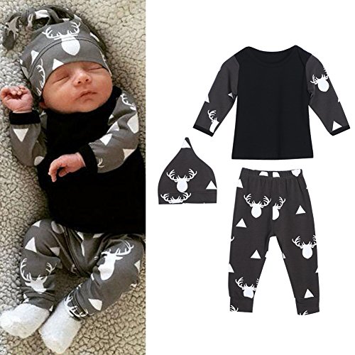 domybest ベビー服 肌着 長袖トップス+ロングパンツ+帽子 上下三点セッド ブラック 赤ちゃん コットン素材 パジャマ ルームウェア 普段着 春秋 (100)