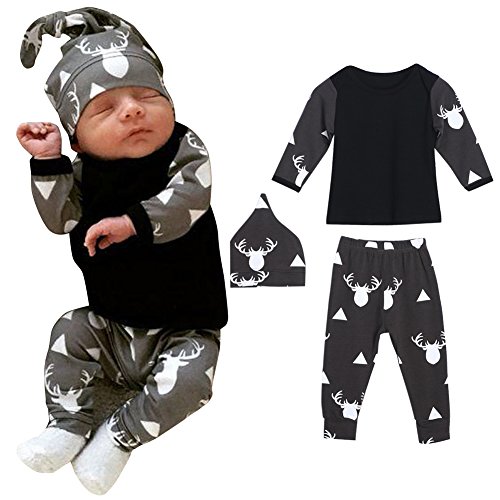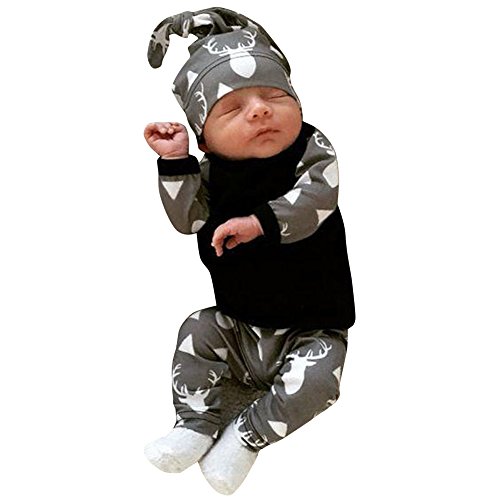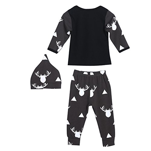 domybest ベビー服 肌着 長袖トップス+ロングパンツ+帽子 上下三点セッド ブラック 赤ちゃん コットン素材 パジャマ ルームウェア 普段着 春秋 (70)